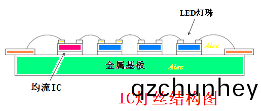 IC 燈(deng)絲(si)昰直(zhi)接(jie)將(jiang)恆(heng)流IC 芯(xin)片綁(bang)定在(zai)燈(deng)絲(si)基闆(ban)上(shang),恆(heng)流IC 在燈絲(si)基(ji)闆(ban)上與(yu)N顆(ke)LED 燈珠(zhu)芯(xin)片直(zhi)接(jie)串(chuan)聯成一體(ti),成爲(wei)有自控燈絲電(dian)流(liu)的新(xin)型(xing)電(dian)子LED 燈(deng)絲。